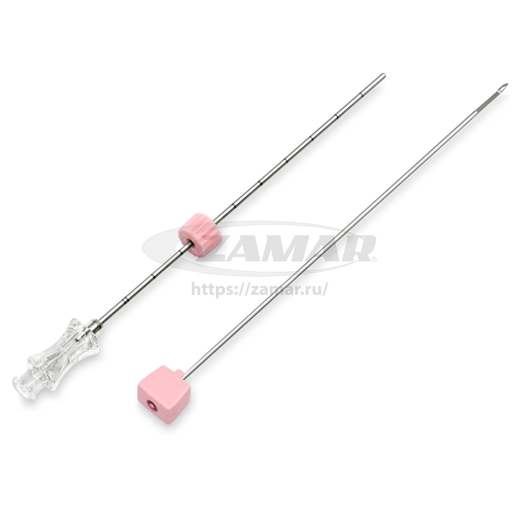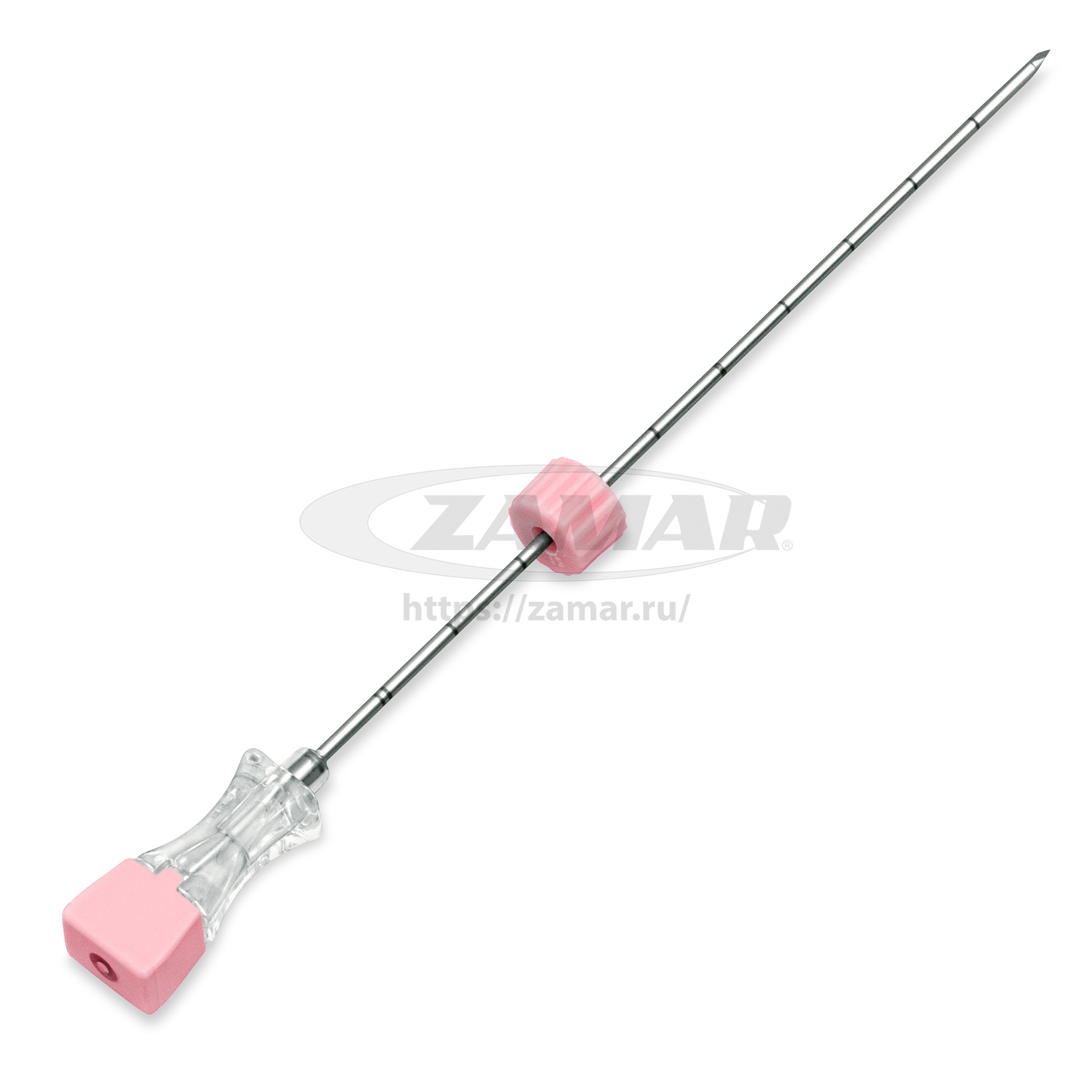 Особенности: сантиметровые эхогенные метки по всей длине иглы, ограничитель глубины проникновения, коннектор для шприца Луер-Лок, внутренний эхогенный маркер, троакарная заточка стилета.